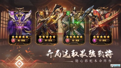 2、三国阵容:魏、蜀、吴、群雄各阵营武将都有特色技能,合理的搭配才是王道。
