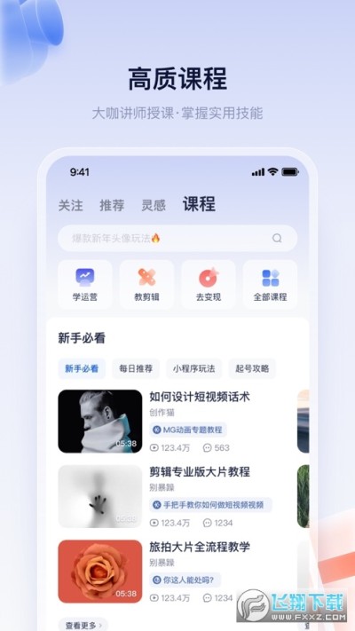 -内容优质丰富,涵盖短视频运营、剪辑、变现、摄影等内容,快速获取干货知识。