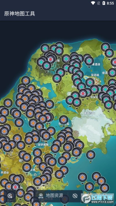 软件可以帮助原神玩家更好的去获取游戏资源,轻松的畅玩游戏,对资源的未知进行标记等等,各种资源的位置都可以精准的进行搜索无论是风神瞳还是铁矿石,在软件内都是可以查看得到分布位置了,省去你跑图的时间包含了各种重要的资源点,并且每个点都有标点功能只需单击该标记,可以取消标记。