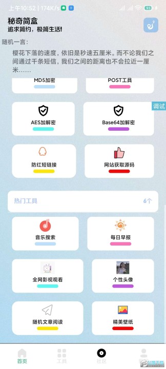 秘奇简盒app官方版是一款多功能工具箱软件,这款工具箱软件提供音乐搜索、壁纸大全、头像大全等丰富的生活功能,用户可以根据不同的服务功能来获得编辑的服务,感兴趣的赶紧下载体验吧!