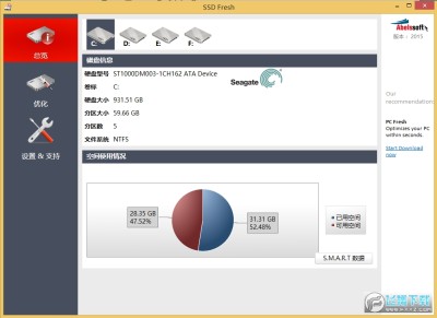 获取有关驱动器和制造商的信息,SSD Fresh 2021显示适用于计算机中安装的硬盘驱动器的常规信息,例如,您可以查看存储容量和已占用的空间