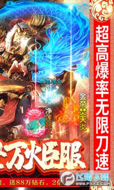 ★首充全部5倍,上线送钻石88万钻石,2亿元宝,青莲地心火