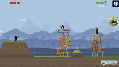 2、或者只是用强大的弹丸粉碎它!但要记住!火柴人敌人非常危险。