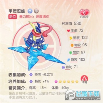 游戏前期能达到7星的精灵还是很少的,忍蛙就是性价比极高的一个,在阵容的搭配上也比较容易,如果有水君就更好了。
