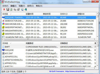 WinPrefetchView中文版是一个预读文件查看器,用于读取储存在您系统中的预读取文件,prefetch是一种xp以上操作系统中包括的加速系统启动机制并显示其中信息的工具。通过这个小程序查看这些文件,您可以知道每个应用程序使用了哪些文件,或者Windows启动时加载了哪些文件