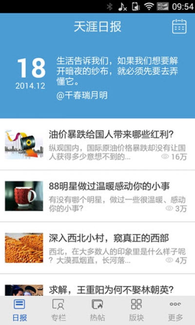 天涯日报是一款非常不错的手机端新闻资讯软件,这里有海量最新、最热门、最火热、最有趣和最窝心帖子供大家欣赏,让大家实时掌握最新动态,感兴趣的朋友切不可错过哟!