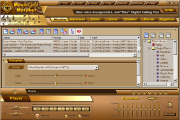 同影像文件需要后期处理一样,音频文件也需要有专业音乐编辑人员进行处理。那么一款质优音频处理软件Music Morpher Gold是必不可少的。Music Morpher Gold简单的说是一款全功能的音乐编辑器和MP3抓轨工具。