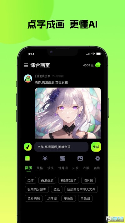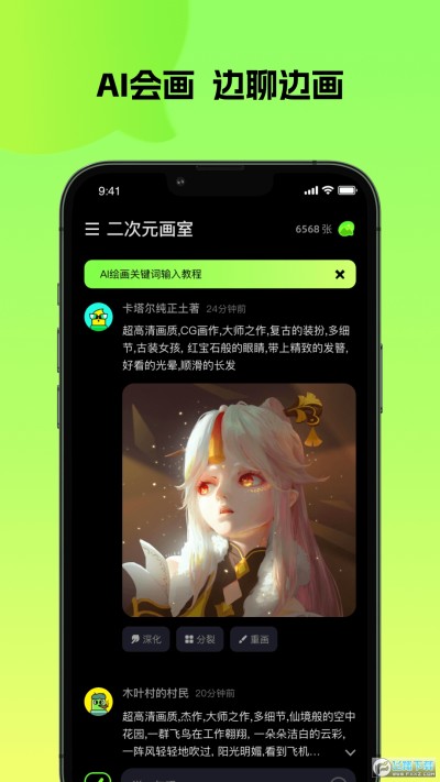1、这款软件进行AI绘画都是非常的方便,只需输入关键词就可以绘画;
