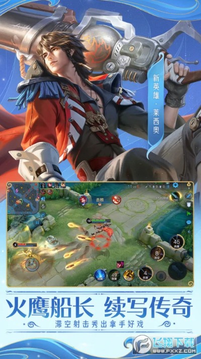 1.新英雄-莱西奥:散漫不羁、爱管“闲事”的年轻小伙——莱西奥,在危急关头接受了传奇英雄的委托,成为了守护海都的“火鹰船长”。他改造武器,研究适合自己的火炮打法——利用烟雾弹效果隐蔽身形,利用开炮的冲击力跃起滞空,上演“日落海烟花秀”。在伙伴的陪伴中成长,在危机与机遇并存的冒险中感悟,他终将续写自己的传奇!