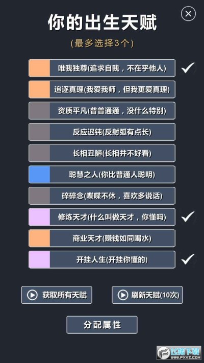 3、玩家可以体验不同的人生,并且通过不同的属性和天赋来丰富修仙旅程。