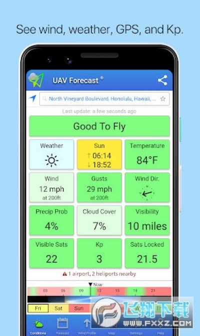 什么时候乘坐四轴飞行器会好?通过一个便捷的工具即可查看天气预报,GPS卫星,太阳活动(Kp),禁飞区和飞行限制。非常适合DJI Spark,Mavic,Phantom,Inspire,3dR Solo,鹦鹉Bebop无人机和许多其他无人机和系统。