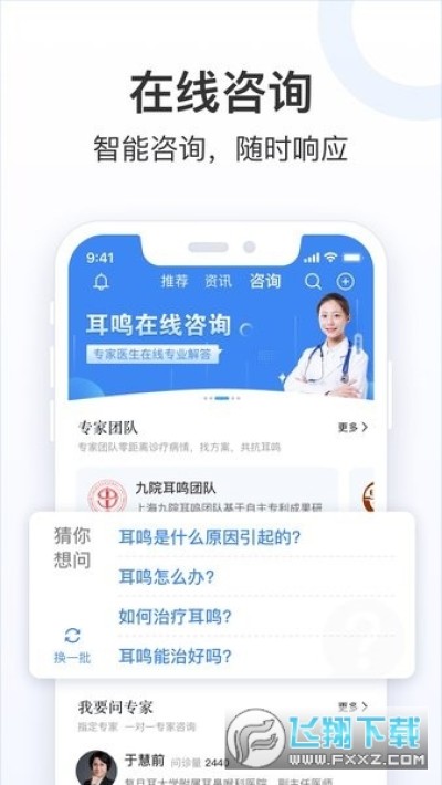 复旦大学附属眼耳鼻喉科医院官方正版最新客户端app,复旦耳鸣RS app下载,软件是一个系统性的耳鸣康复平台,这里支持耳鸣声匹配,可以快速诊断耳鸣问题,打开就可以直接使用,支持在线咨询和智能咨询等内容,很方便易操作。