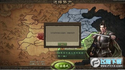 注册后游戏进入画面是相当的精彩,让你想像三国时期金戈铁马、血洒战场的情景,如下图:
