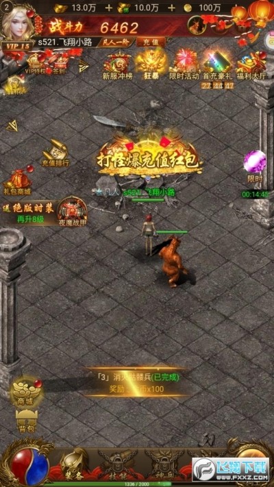 3、首先购买18元宝魔龙之血,领取首冲奖励,骷髅洞打骷髅消耗活力值,获取高额经验。