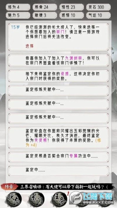 (2)前期选择:前期是可以这样玩的,把第一年的事件过了后,点200次升仙塔进行第一次切磋,然后再把修为提升到20,进行第二次切磋,(反正就是修为越高,打升仙塔胜算越高)。