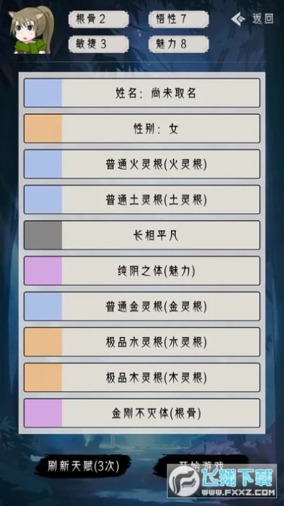 1.开局天赋:主要分为修法和炼体两种分支,可以按照自身需求选择。当然还有其他的发展方向,比如说时空之体之类加大量速度的,速度高了可以修炼辅助加血或者控制他人的法术。