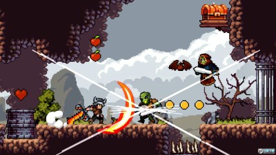 4、苹果骑士是一款复古动作平台游戏RPG。游戏中,玩家控制苹果骑士与邪 恶国王的军队作战,并最后夺回你的王国。