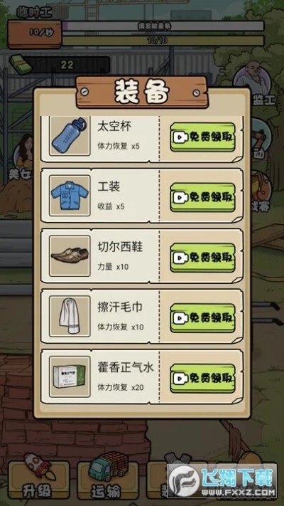 打工日记是一款休闲益智向搬砖玩法游戏,游戏中有着海量的玩法模式等你体验,玩家可以通过点击屏幕的方式来进行搬砖打工体验,游戏中免看广告即可获得奖励,无限钞票等你领。对游戏感兴趣的话不妨点击下载试试!