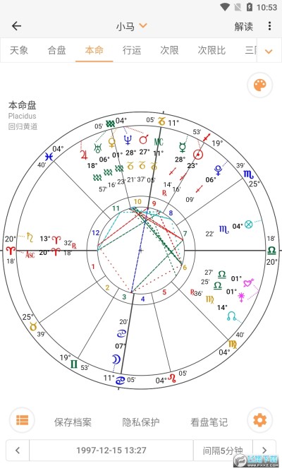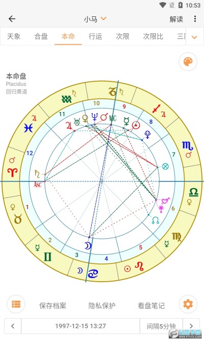 1、全面的星盘类型支持,包括本命盘、合盘(比较盘、配对盘、组合中点盘、时空中点盘、马克思盘)、推运盘(行运盘、次限盘、推进盘、三限盘、太阳返照盘、月亮返照盘、太阳弧盘、法达星限)、合盘推运(组合次/三限盘、时空次/三限盘、马盘次/三限盘),基本囊括你所了解到的全部星盘类型;