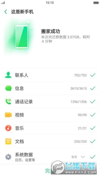 数据传输剩余时间贴心提示,搬家进度一目了然。
