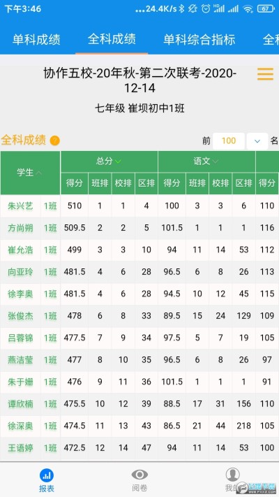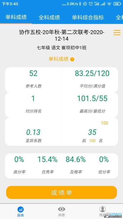1、查看成绩、排名、学科均衡性、成绩对比、进退步、分段统计分析