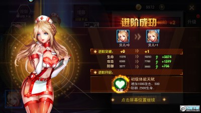 接下来就是升级过后,可以对女神的进阶,这也是提高女神战斗力的方法,通过进阶获得女神新天赋,提高女神的基础属性和战斗力。