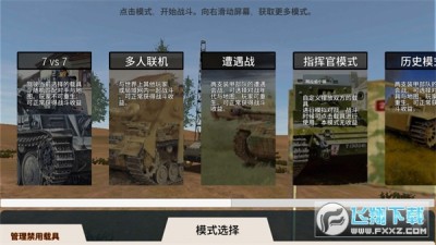 遭遇战:俩支装甲部队的遭遇会战。可选择对战年代与地图,玩家可重生,可正常获得战斗收益;