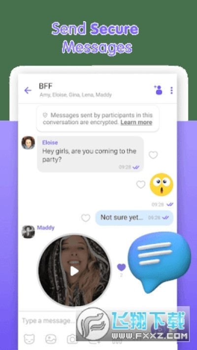 发送免费的文本,照片,贴纸,GIF或视频信息和许多其他类型的文件。