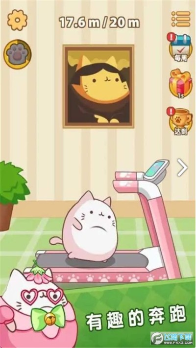 3、超可爱画风超可爱的小猫设定,我们可以针对猫在不同的减肥阶段制定不同的减肥计划和任务,有很多挑战要经历。