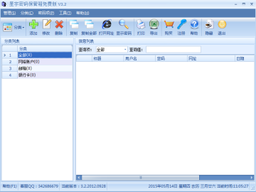 密码是验证身份和保护安全的重要手段之一,生活中需要使用到密码的地方无处不在。但是密码遗失了就非常麻烦,比如银行卡密码等与资金相关的。星宇密码保管箱是一款简单易用、安全可靠、绿色环保、美观大方的用户密码保管软件。它能保护并且管理您的所有帐号和密码等信息。有了它的帮助,您只需要记住一个登陆密码,就可以方便地保存记忆您的个人保密信息了,让你方便,安全的登录网站、论坛、邮箱和软件。《星宇密码保管箱》的数据库采用国际上成熟的加密算法,你的密码牢不可破。