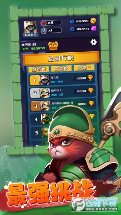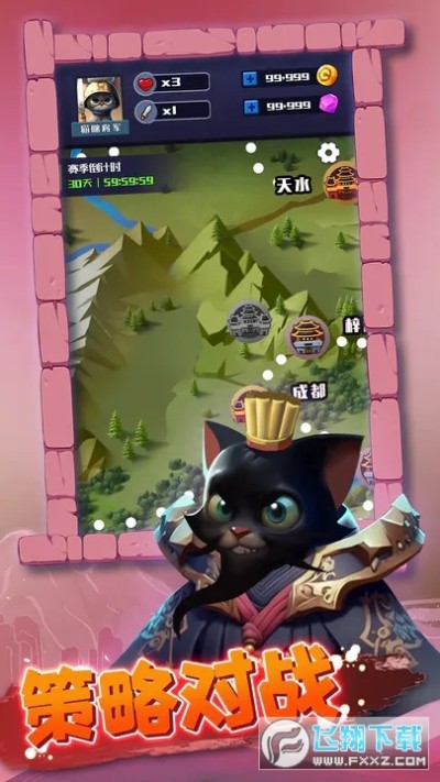 乱世争霸、天下三分,在这纷争的世界里,群雄们纷纷化身为可爱的猫猫英雄,通过喵之扭蛋机来招募他们,发挥你的雄韬伟略,施展天下之计,在这片动荡的大地上调兵遣将,攻城掠寨,与你的战略伙伴们一起实现天下归一。