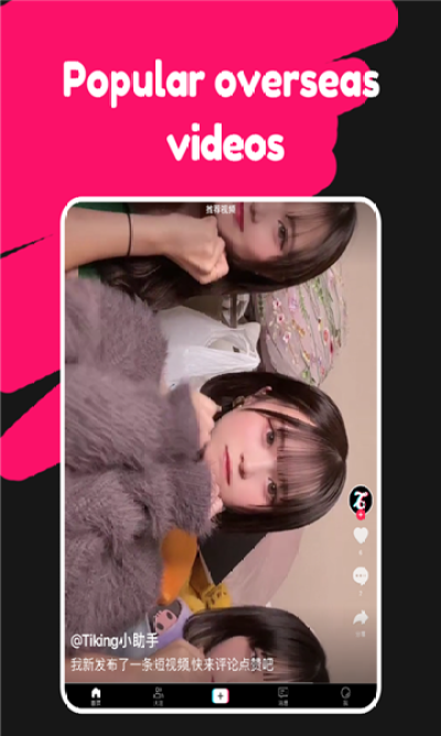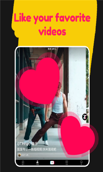 tiking软件是一款很好玩的短视频播放平台,你可以看到海内外热门网红博主的短视频内容,根据你的喜好,关注你喜欢的博主,给博主的短视频点赞。是一个多元化的短视频播放平台,你可以看到不同国家的用户在这里发布的短视频,笑料不断,让你看到更多有趣的短视频。