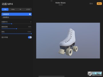 你可以在「操作 - 分享」中选择为 3D 模型创建并导出展示动画,可以让模型在视频中进行循环的全旋转或半旋转展示。