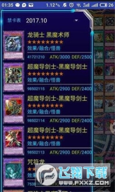 在海量卡池中编辑卡组,还有不同的禁限卡表可以选择,通过文本搜索、在效果上还是名字上均卡,搜索卡片的速度回非常快。