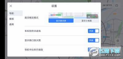 3、在导航设置中,可以设置路况概览模式、是否开启车标到终点连线、显示路口放大图、导航中比例尺缩放、导航视角