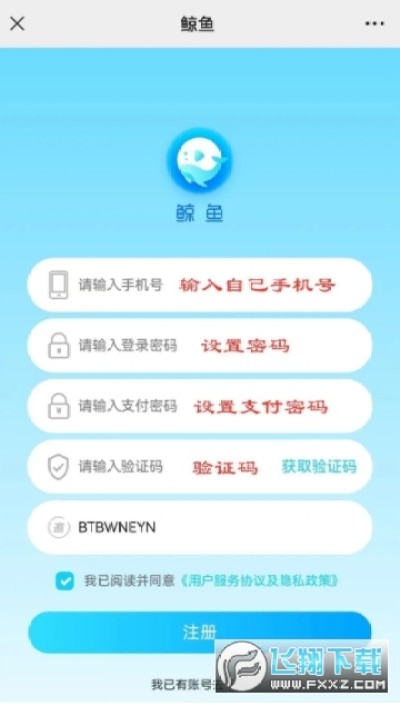 2、填写自己的手机号,然后设置密码,设置支付密码,支付密码需要六位数字,填写验证码,然后点击注册完成进入主页