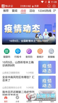 2、在上方类目滑动选择想要查看的浏览分类,以“战役”为例,健康码、行程卡以及山西各地疫情区域分布信息一览都在这里,迅速掌握一手最新动态。