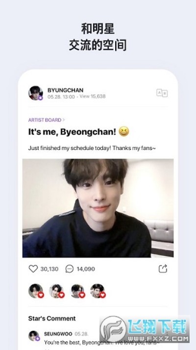 VLIVE安装包安卓下载最新版本是一款关注明星直播和动态的手机软件,这款动态软件的功能强大,加入了超多丰富的功能,用户可以在线和偶像互动,了解爱豆的近况和最新的资讯消息,还可以飞速掌握行程哦!