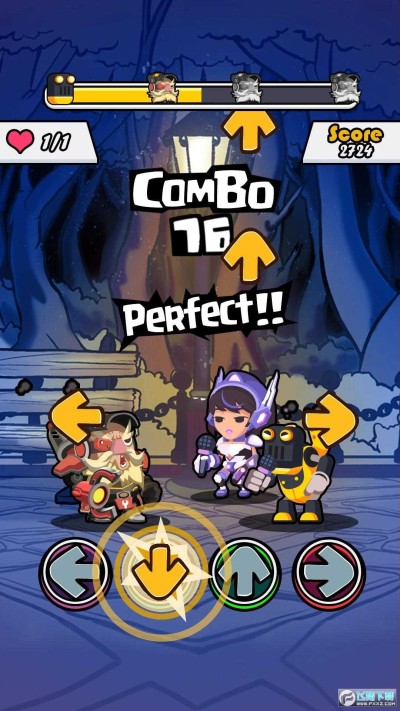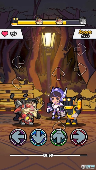 3、跟随放克节奏摇滚节拍。对手会唱出一个音符模式,你需要使用箭头键来镜像模仿动作。