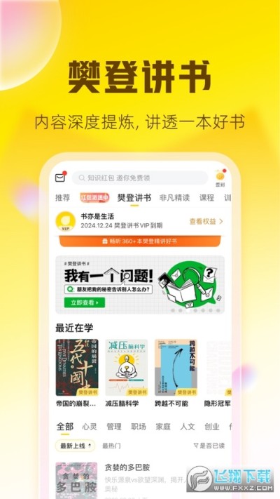 帆书原樊登读书APP是一款专业人士在线讲解教学的平台。软件涵盖的书籍资源非常的丰富,都是正版无广告的,用户可以在这里感受最极致的阅读体验。感兴趣的小伙伴们快来本站下载体验吧!