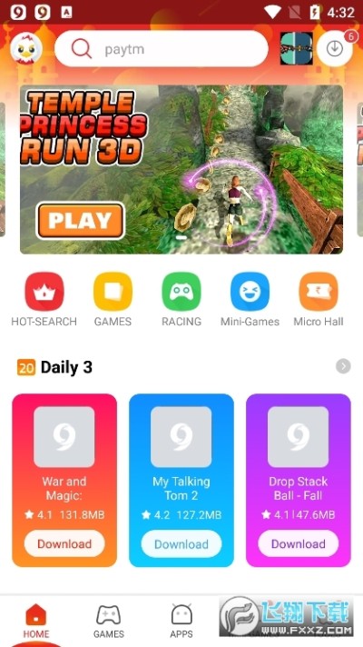 用搜索方式快速查询,游戏、应用、礼品、活动全部在网络上结束。