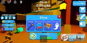 当拥有一定数量的金币后,我们可以去找标有购买标识的商人购物!进入黄色圈圈后,会弹出商店界面,共有四个分类,分别是工具、背包、装扮(可以购买一些发型、宠物等)和重生商店(可以购买一些道具)。前期主要是购买更高级的工具和背包,这样就不用频繁回到地面,提高挖矿(赚钱)的效率~拥有高级的道具后,我们就能逐渐深入更下层的地里挖矿,能挖到更好的东西,运气好的话能挖到金箱子、钻石等,但对应的,需要的挖矿工具级别会很高!