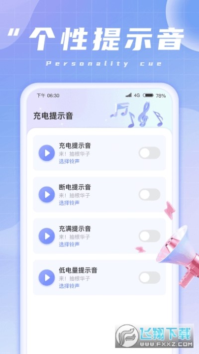 海量不同风格的动画素材供用户选择,还能设置充电不同状态的提示音,趣味充电设置,让充电变得更有辨识度。