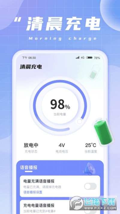 清晨充电是一个简单的便捷充电工具,非常适合中老的用户快速了解手机充电情况。可设置不同充电状态下实时语音播报,还有海量的素材供用户选择,不仅可以选择可爱、搞笑、古风等不同风格的充电动画。