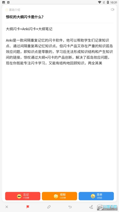 闪记卡是一款将笔记、记忆和知识管理融合于一身的新型学习工具和教育工具,不只是记录,更重要的帮你吸收知识,闪记卡是通用型工具,不限于学英语、语文、计算机、法律、中西医等,在应试提分上有显著效果。
