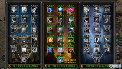 3,天赋系统,每个职业3种天赋路线,攻击,防御,通用,策略化选择天赋加点可得到游戏极大乐趣,终极技能天赋获得,天赋点数根据等级获得,也有天赋重置卷重置。