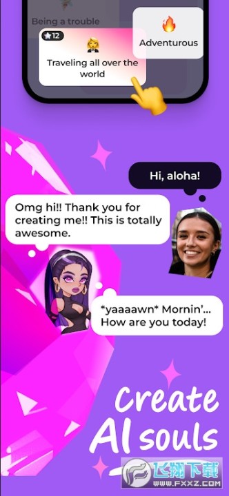 gemsouls下载官方最新版2023是一款主打人工智能的虚拟人社交平台,这款社交软件支持真人交互的形式,可以在线互动,通过AR摄像头的独特功能来加强聊天的真实感受,感兴趣的赶紧下载体验吧!