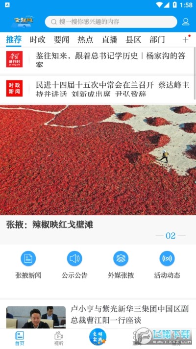 是为张掖市打造的融媒资讯软件,这里有着各种新闻、视听等服务功能可以使用,帮助当地用户们更好的对全天发生的事情进行了解,大到国家大事小到身边的八卦新闻都能了解到。