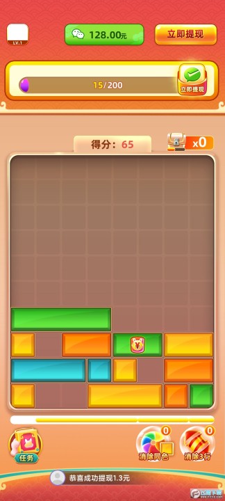 前兔似锦赚钱游戏极速版2023最新版是一款消除玩法的休闲赚钱游戏,游戏里玩家可以体验经典的俄罗斯方块玩法,赚取金币完成每日任务可以赚钱,在挑战消除玩法的同时也可以获取收益,想要体验的小伙伴快来下载试试吧!
