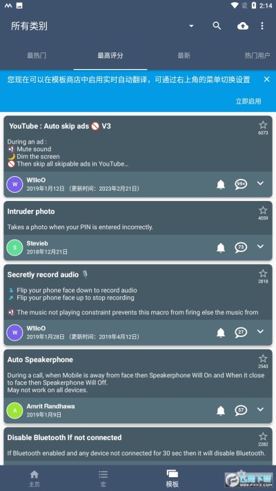 macrodroid安卓自动化app是一款支持手机自动化操作的软件,软件中用户可以一键设置自动宏指令,支持自动解锁手机、自动免提接电话、自动开关勿扰、自动截屏、自动签到打卡、自动播放音乐等等功能,对软件感兴趣的话不妨点击下载试试!
